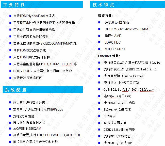 數字微波傳輸設備集成,微波收發信機,調制解調器,TDM/PTN交換技術,空間分集,分組交換及微波光纖特性于一體的數字微波系統,是匯聚下一代分組IP微波高集成化產品。此系統的結構與傳統分體式微波結構一致,但融入了新型的交換、匯聚和流量管理等技術特點,使得接口類型豐富、配置靈活,節約了投資成本、有效地提高了數據通道利用率。 適用于5G/4G/3G/LTE等網絡,可以實現從已有PDH/SDH網絡平滑升級到下一代的混合型或全IP承載網絡。
