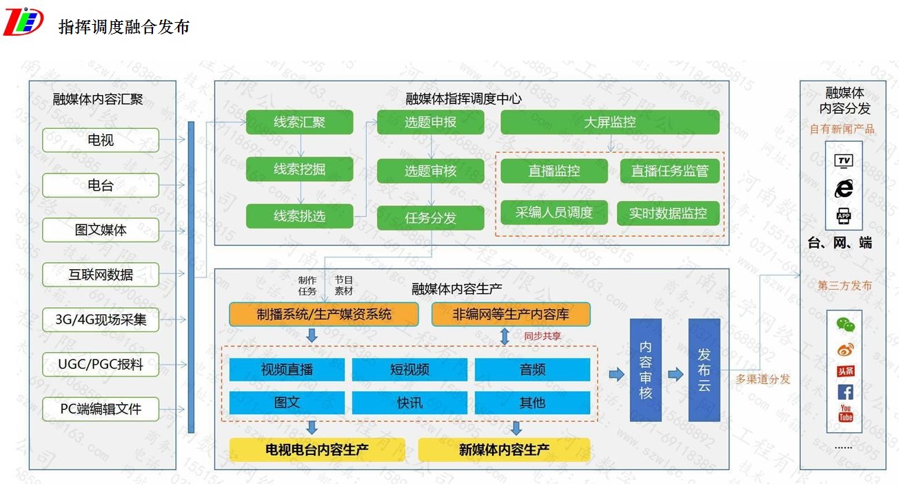 a).客戶端 1.支持文字、圖片、音頻、視頻等多種形式的展現; 2.支持自適應屏幕尺寸展現; 3.支持置頂播發和推薦播發,提供播發數據、內容排序和推薦位的調整控制手段; 4.支持直播功能; 5.支持手機號、郵箱等多種注冊方式; 6.支持統一的 CMS,具備將同一內容播發到不同客戶端或不同欄目的功能; 7.支持客戶端內功能模塊的快速增加或刪除; 8.支持添加關鍵詞和相關推薦內容; 9.支持第三方 H5 服務模塊的接入; 10.支持下一代無線通信技術環境下的多種業務的應用。 b).報刊 1.支持對新聞版面制作流程、合版流程、大樣簽發、版面加密、傳版、印前制版流程等各出版環節進行統一的流程控制與管理; 2.支持對版面打印、簽發、傳版、改版狀態的監控; 3. 支持將操作人員與底層出版目錄隔離開來; 4.支持將版面文件規范化成印刷級別的 PDF 文件,對于不符合印刷標準的情況進行預警提示; 5.支持用于印刷 PDF、閱讀 PDF、版面圖的保存; 6.支持與采編系統配合實現報紙 PDF 版面的簽發和傳版控制以及自動生成加密的印刷 PDF 報紙版面; 7.支持保證字體穩定的相關技術,保證字體見報后不出現錯誤; 8.支持從采編平臺校樣、簽發傳版、印點接收制版全程加密,防止被人為修改與破壞; 9.支持印刷環境的模擬; 10.支持基于印刷 PDF 的激光打印校樣。 c).廣播 1.提供成品節目按照編排計劃向終端用戶的播出管理,具備主備鏈路; 2.具備用戶及權限管理、日志記錄能力; 3.滿足《廣播電視安全播出管理規定》(廣電總局令第 62 號)中關于系統配置方面的規定。 d).電視 1.提供成品節目按照編排計劃向終端用戶的播出管理,具備主備鏈路; 2.具備多路外來節目轉播、臺標掛角滾屏等簡單字幕播出、正播節目單直接在線修改、應急播出、 節目播出單預編排功能; 3.具備外來信號上載、外部文件導入或轉碼導入、自動批量導入、待播節目審查、文件生命周期自動管理等功能; 4.具備用戶及權限管理、日志記錄功能; 5.滿足《廣播電視安全播出管理規定》(廣電總局令第 62 號)中關于系統配置方面的規定; 6.滿足高清播出的要求。 e).大喇叭 支持與應急廣播系統對接,通過農村大喇叭向公眾發布緊急消息,提供信息服務。 f). 網站 1.提供政務、黨建、民生、文化、教育等各類縣域網站的統一門戶; 2.支持與各網站 CMS 和 VMS 系統對接,實現內容類型自定義、內容審核、內容評論、內容檢索、數據統計等各種功能; 3.具備直播和點播功能; 4.支持統一的 CMS,支持面向互聯網、移動互聯網、社交媒體的內容發布,具備將同一內容播發到不同客戶端或不同欄目的功能。 g).微信微博等 1.具備微信發布能力,發布內容包括文字、圖片、音頻、視頻等內容; 2.具備微博發布能力,發布內容包括文字、圖片等內容; 3.支持授權綁定多個微信微博公眾號,并支持同一份數據或內容播發到多個公眾號; 4.支持其他社交媒體發布能力; 5. 支持自主本地開發微信小程序。